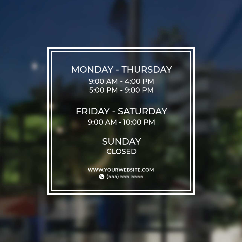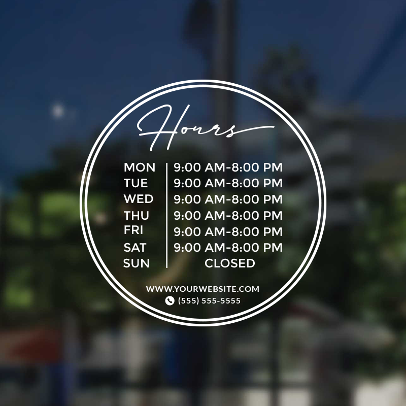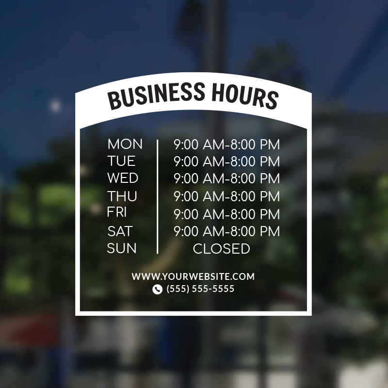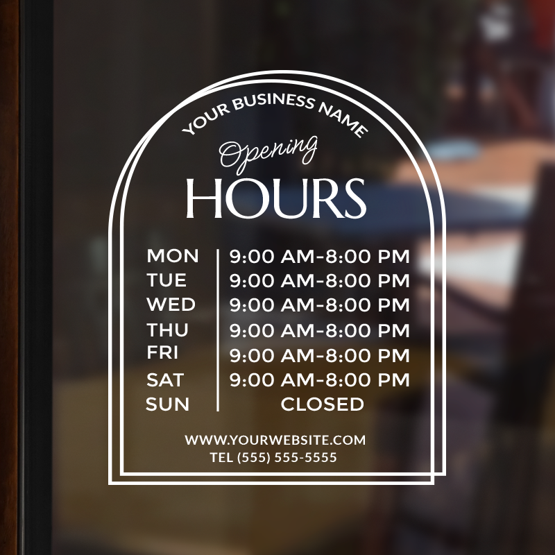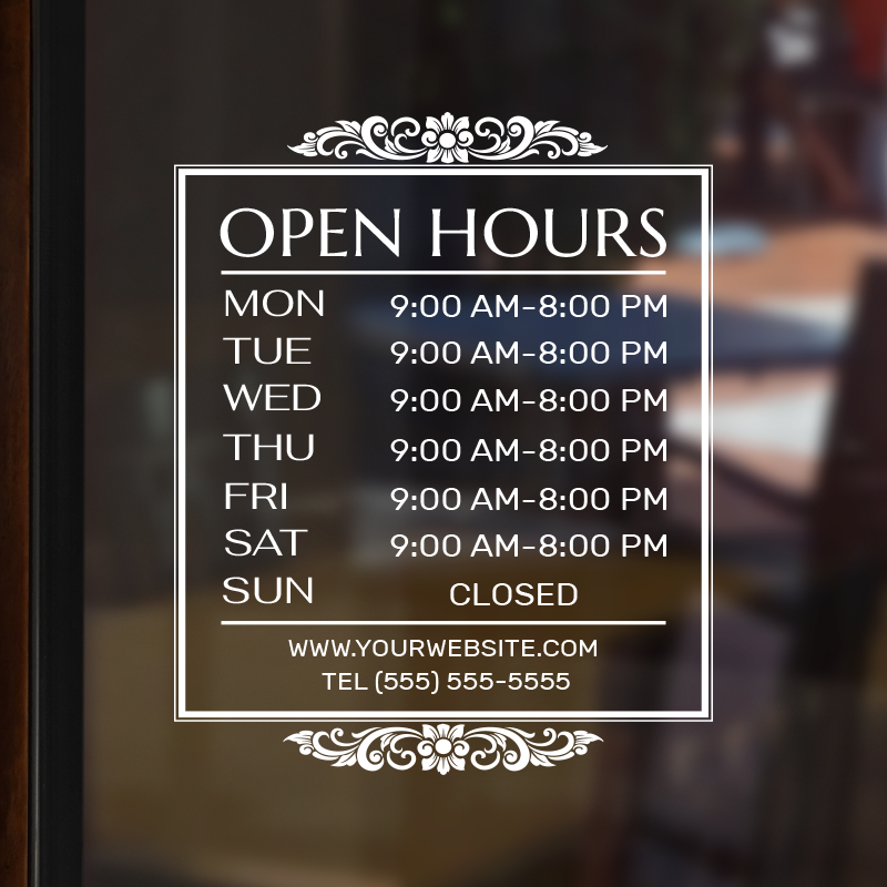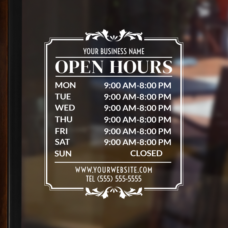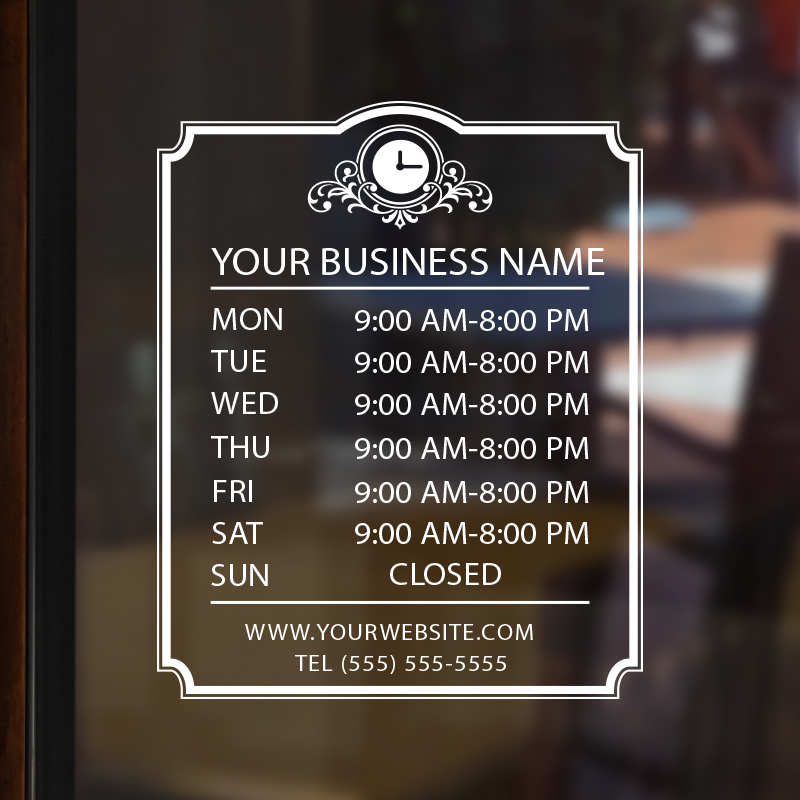 Business Hour Window Decal