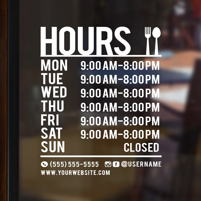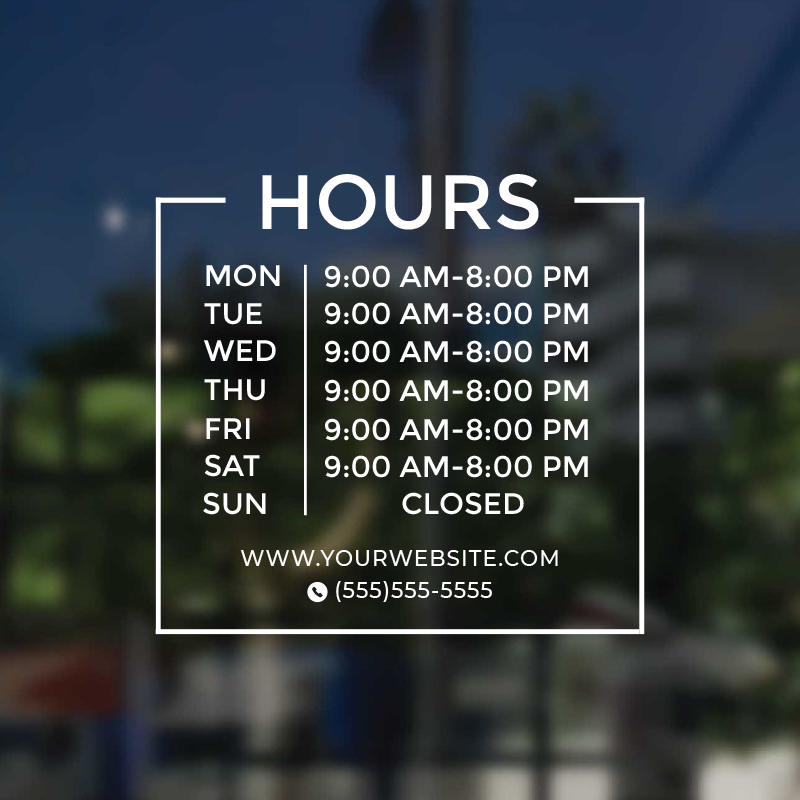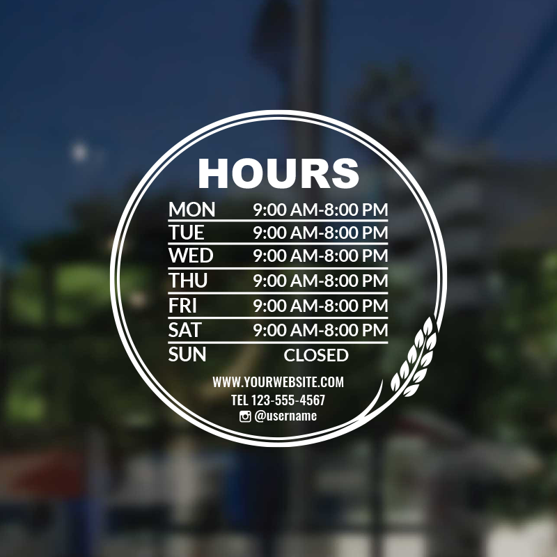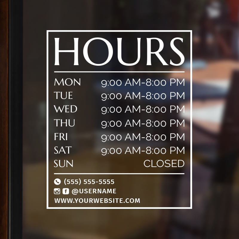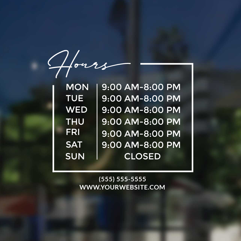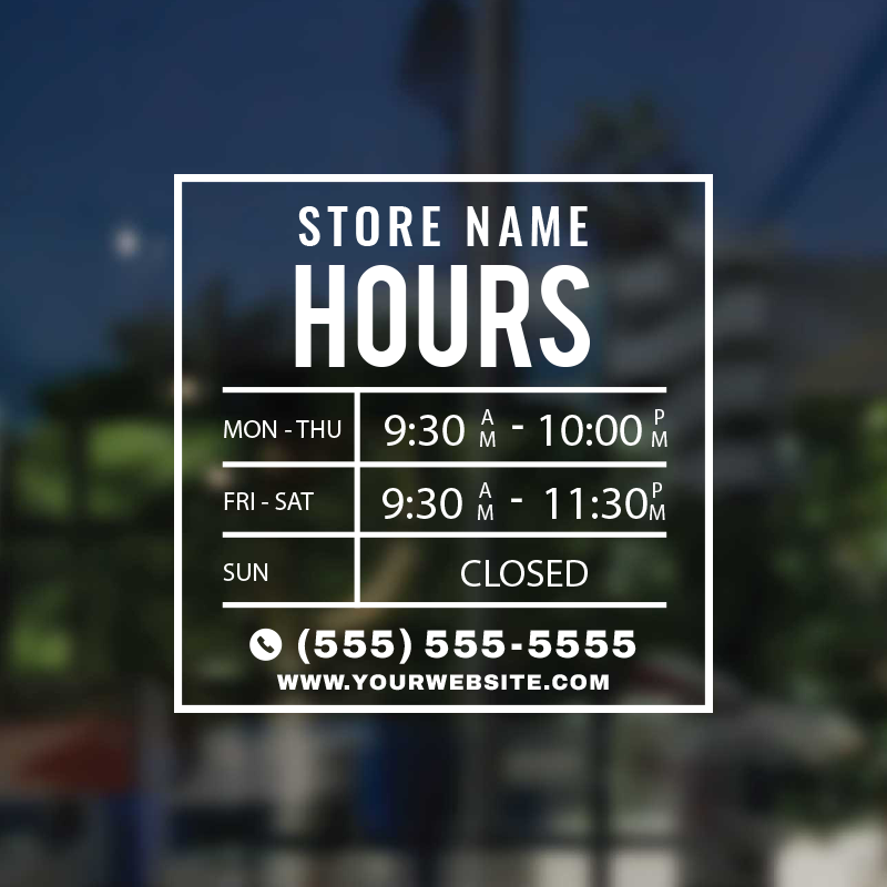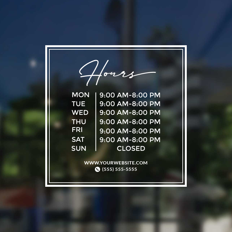 Business Hour Window Decal